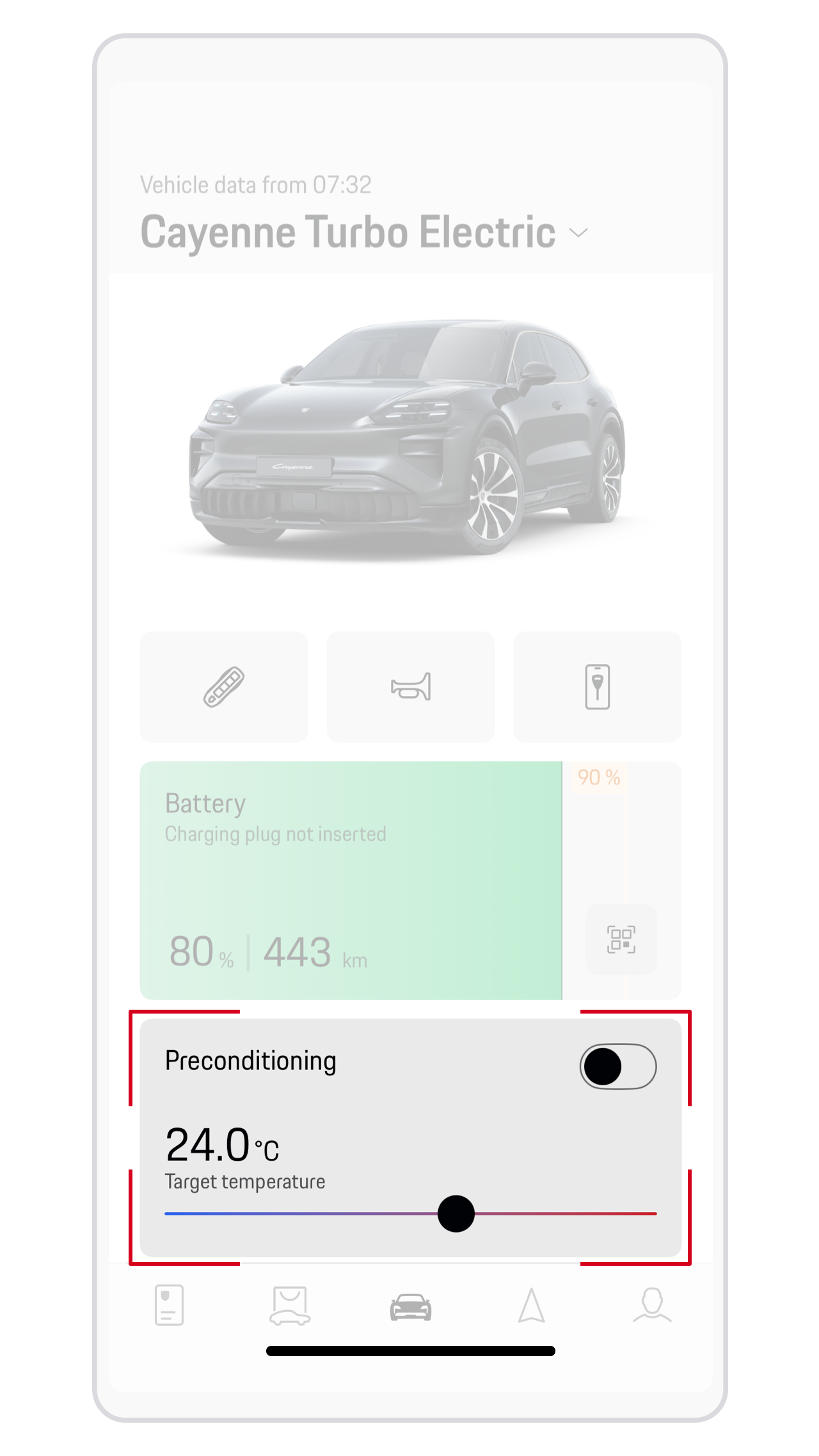 U kunt ook een vertrektimer instellen om uw voertuig voor te bereiden op de geplande vertrektijd, wat wordt aanbevolen vanuit het oogpunt van energiebesparing. Uw voertuig wordt automatisch 'wakker' voor uw geplande vertrek, controleert de huidige interieurcondities en wat de gewenste staat zou moeten zijn. Vervolgens bepaalt hij de benodigde tijd en stuurt hij het verwarmings- en koelproces intelligent en op basis van de vraag aan, zonder dat u een handmatige voorselectie nodig heeft. Op een zonnige winterdag wordt bijvoorbeeld niet elke verwarmingsfunctie, zoals glazen oppervlakken, geactiveerd als dat niet nodig is, om energieverlies te minimaliseren. Dit betekent ook dat het niet per se 30 of 60 minuten duurt, maar slechts zo lang als nodig is om de gewenste temperatuur te bereiken.