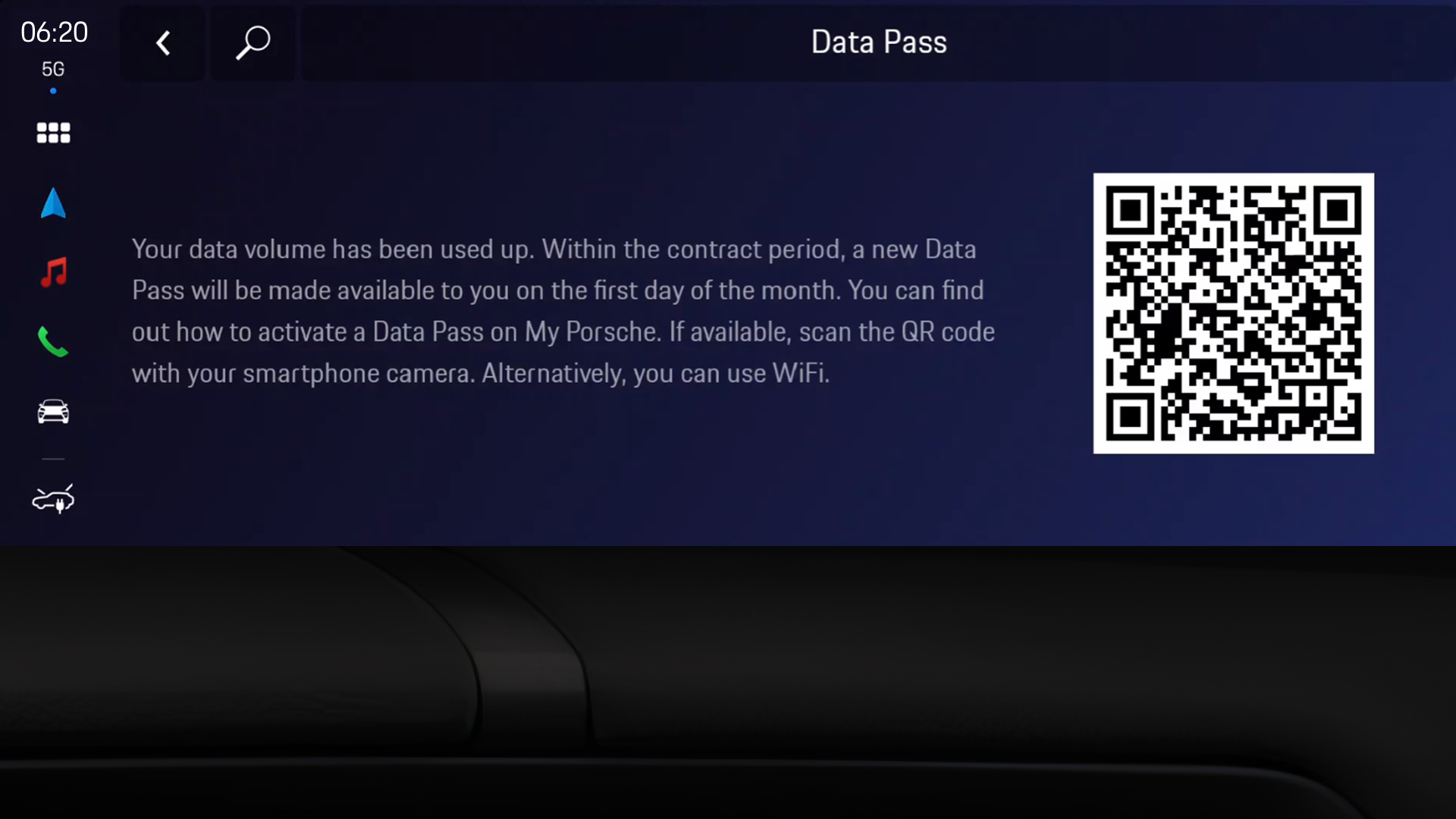 In this case, a QR code is additionally displayed in the car that will lead to the data top-up option.
