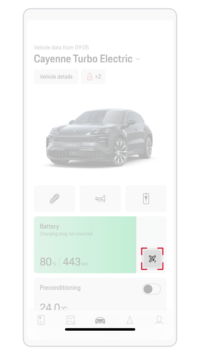 With Plug & Charge, the communication between the car and the charging station may take a moment. Switching to another authentication method too early can cause the charging session to be interrupted. If a charging error occurs, Plug & Charge is temporarily disabled until the car is restarted or driven again. In the meantime, you can continue charging using RFID (Radio-Frequency Identification) or the My Porsche app.